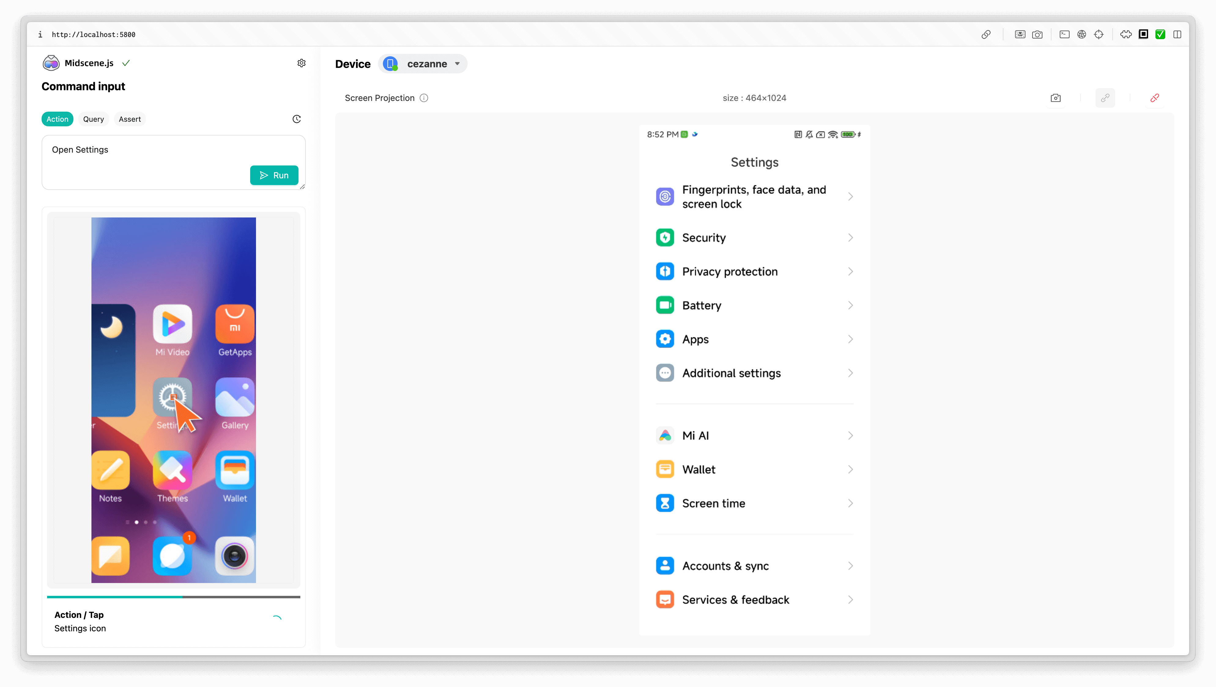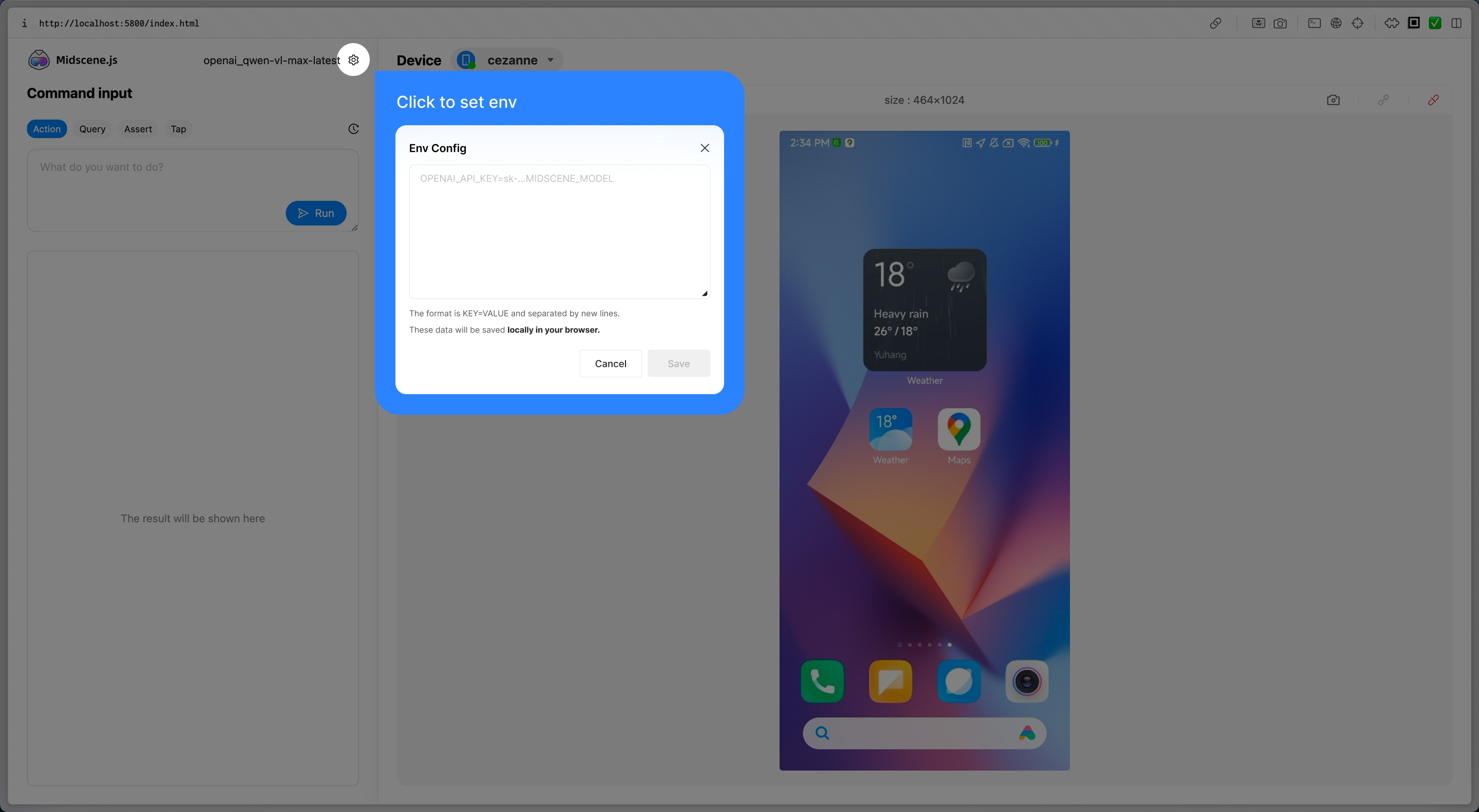 By using Midscene.js playground, you can quickly experience the main features of Midscene on Android devices, without needing to write any code.